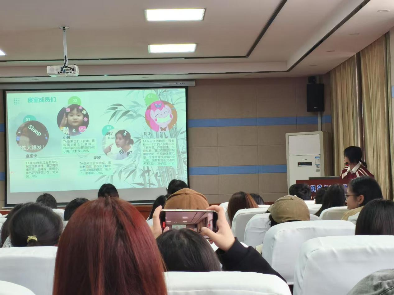 在决赛现场,各参赛寝室代表就寝室成员、环境卫生、精神风貌、荣誉奖励等方面依次通过ppt进行讲解,同时各寝室成员也为大家带来了精彩的才艺表演。