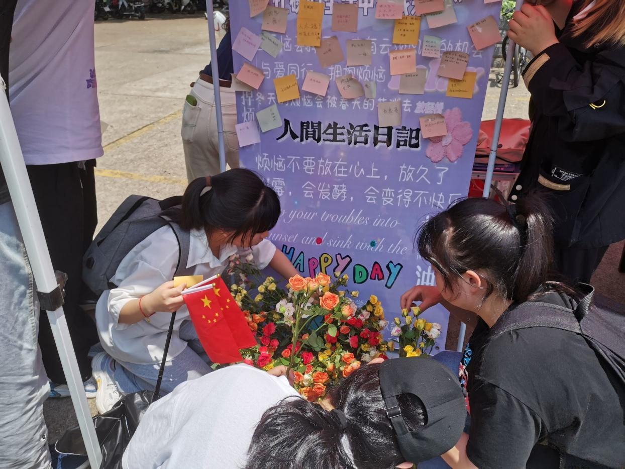 为了丰富学生课余生活,缓解同学们在学习生活中的心理压力,帮助同学们更好地诉说心中的苦闷,排解烦恼,释放压力,增进同学之间的感情,引导同学们以更加饱满的姿态去面对未来的挑战,以更加健康的心理去度过一个愉快的大学生活。2023年5月9日上午,我院以“放飞烦恼,拥抱快乐”为主题的心理疏解活动于北区食堂门口举行。