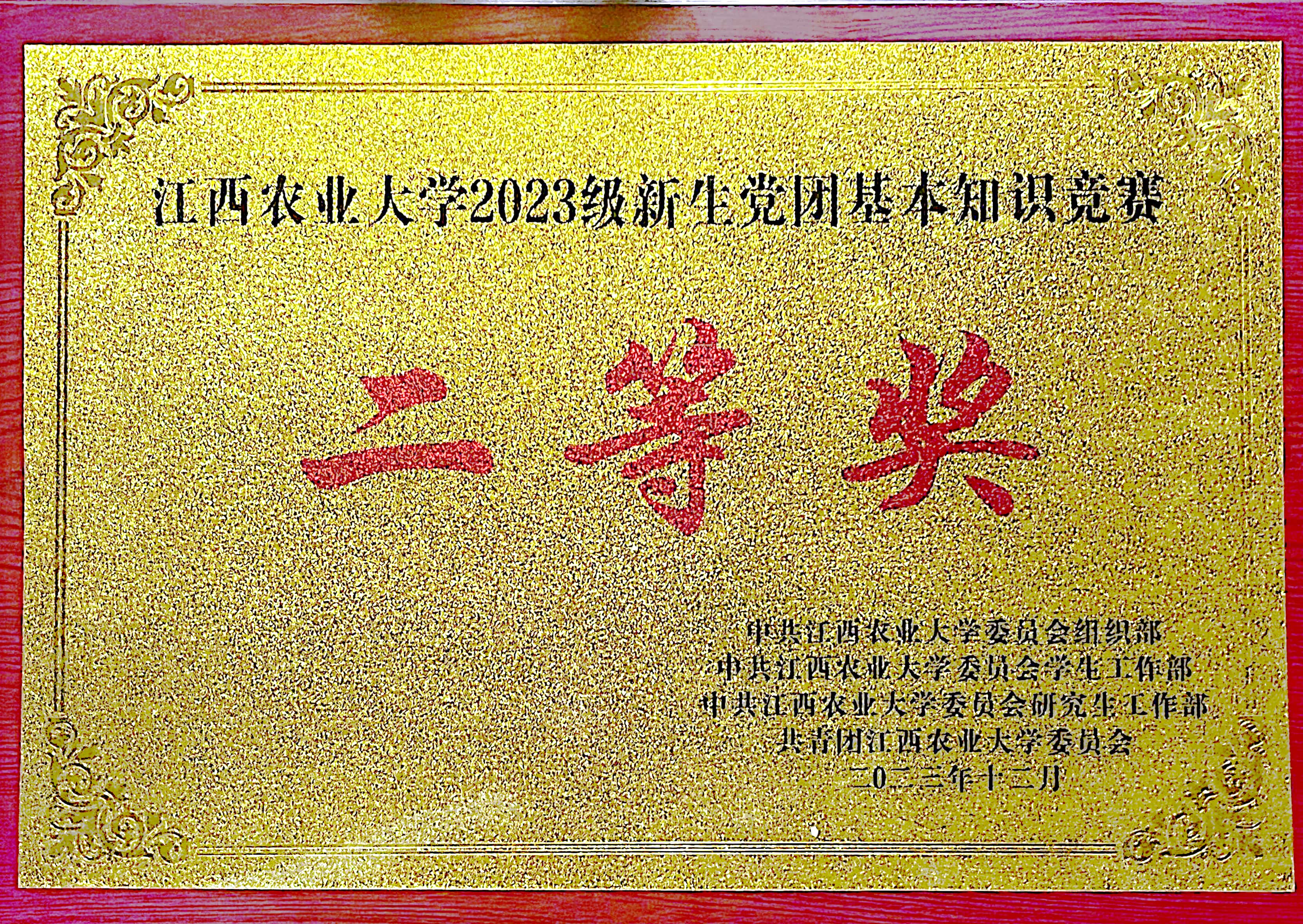 1214日晚,由中共江西农业大学委员会组织部、中共江西农业大学委员会学生工作部、中共江西农业大学委员会研究生工作部、共青团江西农业大学委员会主办的“学习贯彻新思想,牢记嘱托建新功”江西农业大学2023级新生党团基本知识竞赛决赛在校大礼堂举行,我院6名学生代表学院参赛,经过激烈角逐,荣获第二名、二等奖,蝉联亚军。