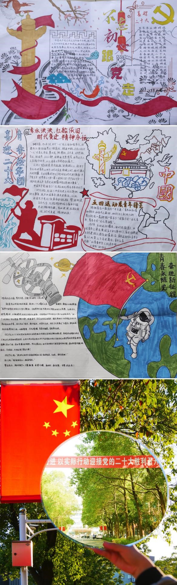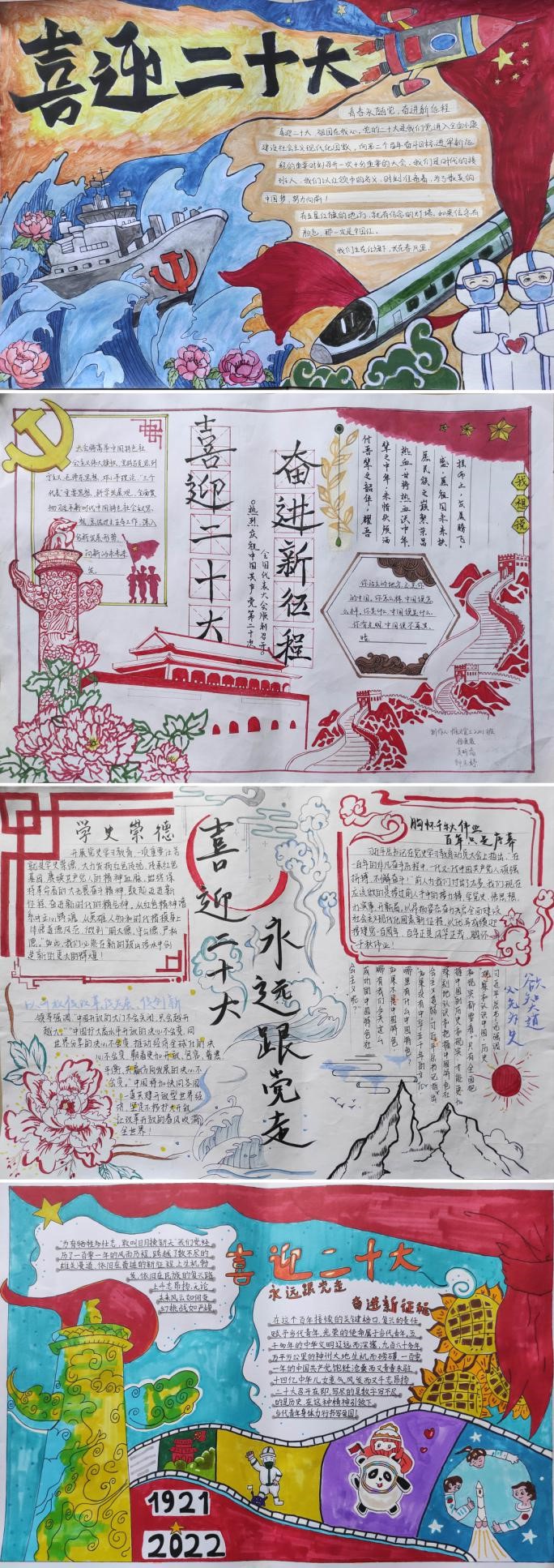 广大学生积极以绘画、手抄报、摄影等作品参加活动,作品集中展现了中国共产党带领中国人民进行革命、建设、改革,走向中华民族伟大复兴的光辉历程,歌颂了新时代中国特色社会主义伟大实践。