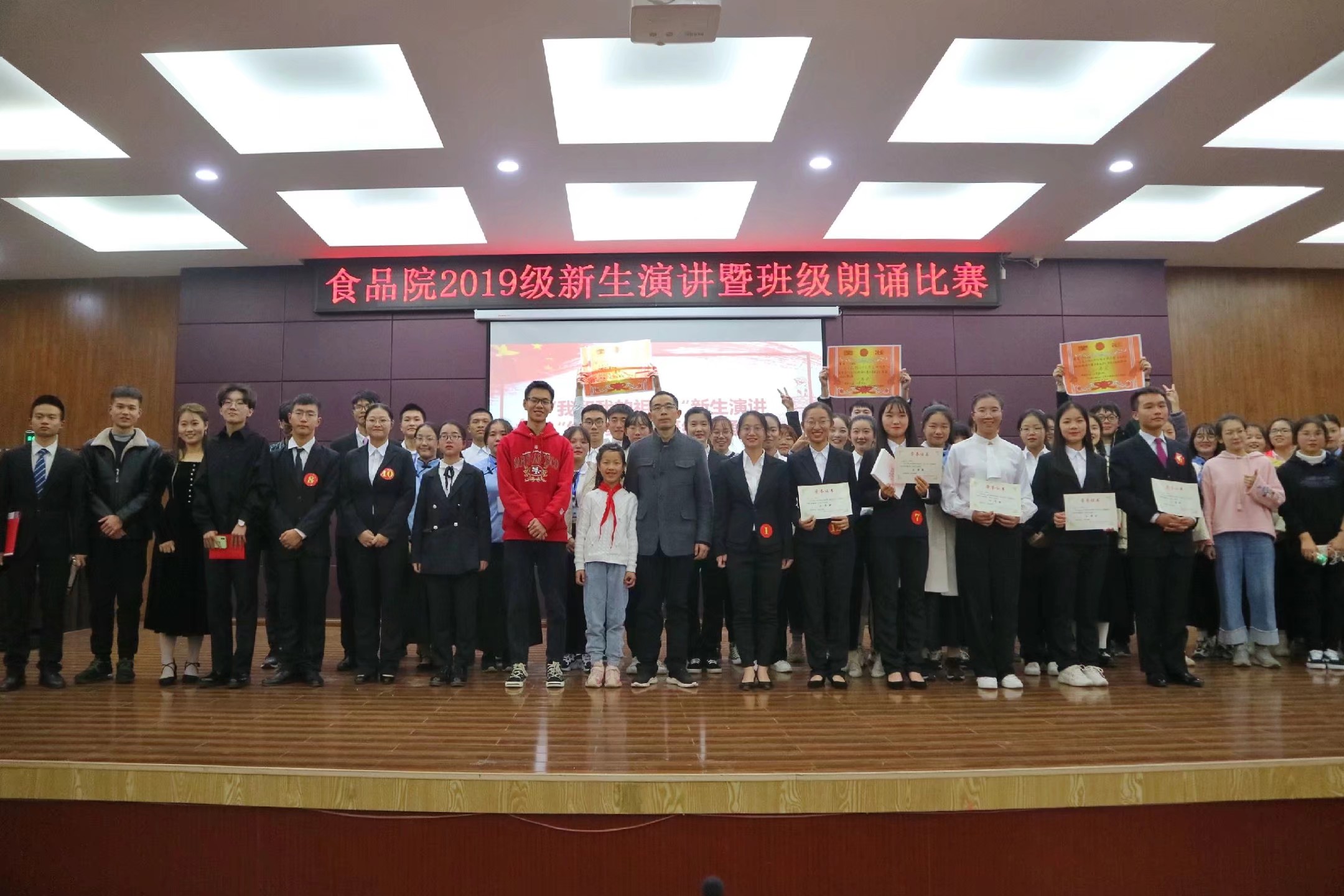 12月4日晚,我院2019级新生“我和我的祖国”演讲暨“红色家书”班级朗诵比赛决赛在学校大学生活动中心501圆满落幕,近300位师生观看了比赛。此次比赛是为庆祝新中国成立70周年、激发新时代大学生爱党爱国热情、提升学生演讲和朗诵能力而举办,由院团委主办、团委宣传部承办。经过激烈角逐,6位同学和6个班级获奖。