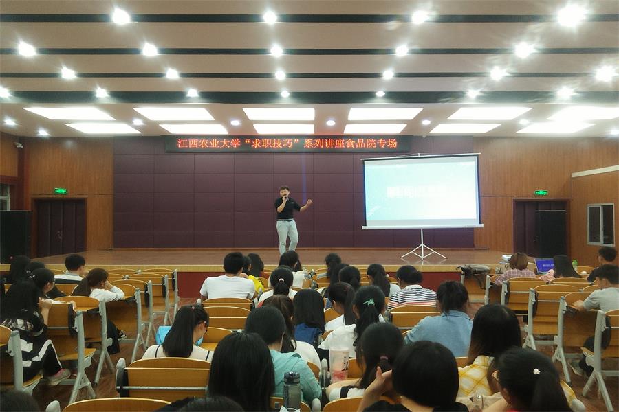 为积极响应十九大提出的“坚持就业优先战略和积极就业政策,实现更高质量和更充分就业”战略,2018年4月11日晚七点,江西农业大学招生就业处主办、食品院承办的《江西农业大学“求职技巧”系列讲座食品院专场》讲座在大学生活动中心501举办。