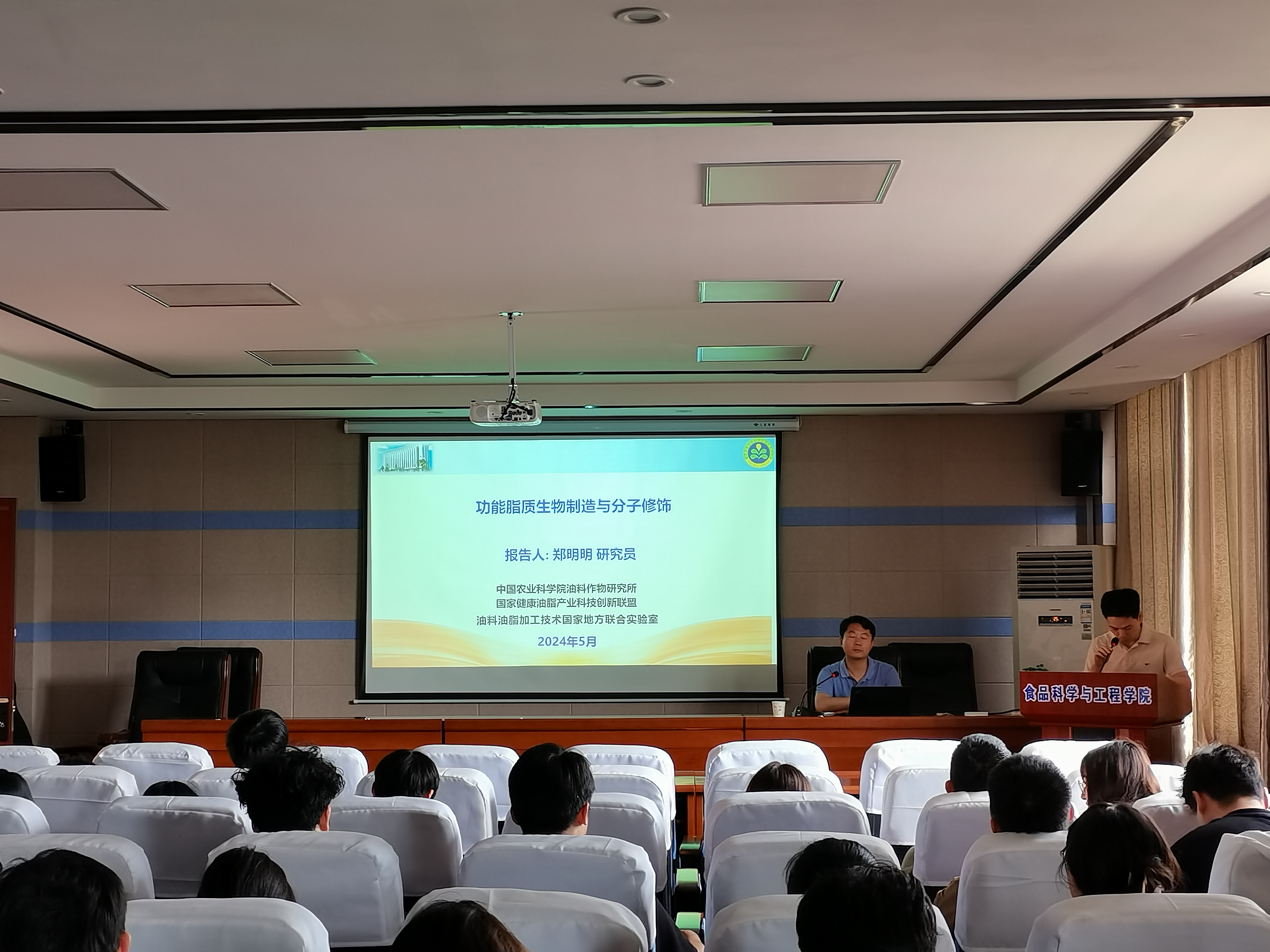 2024年5月23日,国家万人计划科技创新领军人才、青年拔尖人才、杰出青年农业科学家,中国农业科学院油料作物研究所油料品质化学与加工利用团队执行首席郑明明研究员应邀为我院师生作了题为“功能脂质生物制造与分子修饰”的学术报告。我院教师、研究生和惟义实验班代表参加了本次报告会。报告会由学院院长涂勇刚教授主持。
