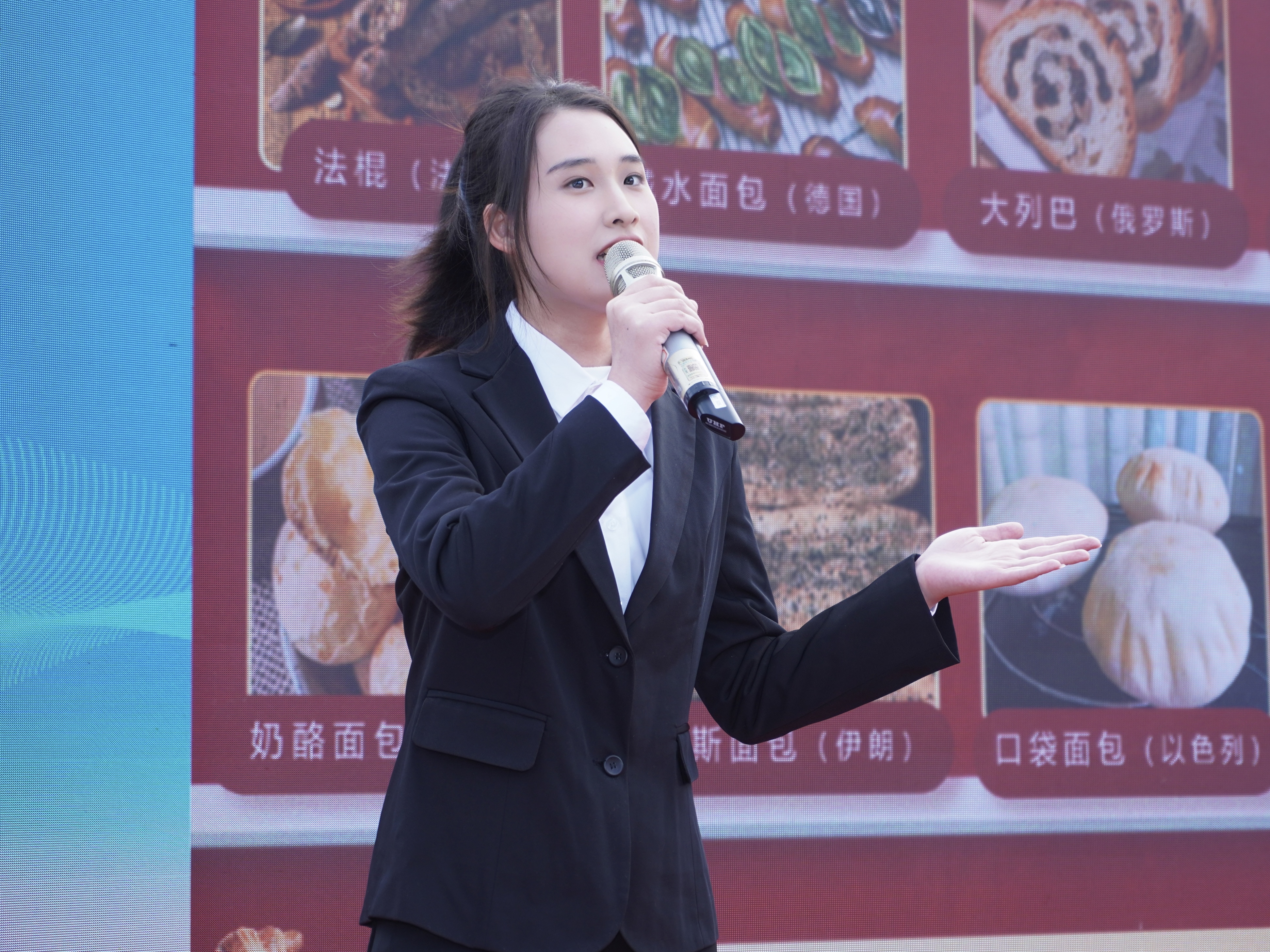 惟义食工2201班陈玲就团队研发的“糙有麦点”全谷物食品创新项目作路演汇报。她介绍,该项目积极响应国家的产业政策,立足本土早稻资源优势,聚焦糙米高值化利用与主食产业升级的技术需求,生动呈现了项目团队如何将科技创新融入本土杂粮资源开发与市场需求的实践探索过程。项目团队瞄准糙米与面包产业融合的技术瓶颈,系统开展了酶法挤压技术攻关。通过严谨的实验设计和16次的参数调整,历经62次配方优化,团队成功突破了糙米面包在质地与口感上的关键技术难题,显著提升了产品品质,并获得专家认可和行业背书。