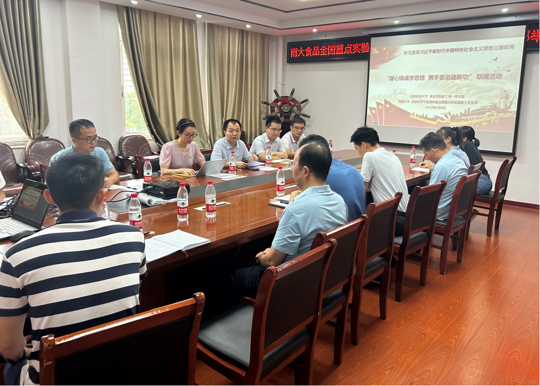 为深入推进学习贯彻习近平新时代中国特色社会主义思想主题教育,充分发挥党建引领作用,江西农业大学食品学院教工第一党支部与南昌大学食品科学与资源挖掘全国重点实验室教工党支部开展了联学联建活动。