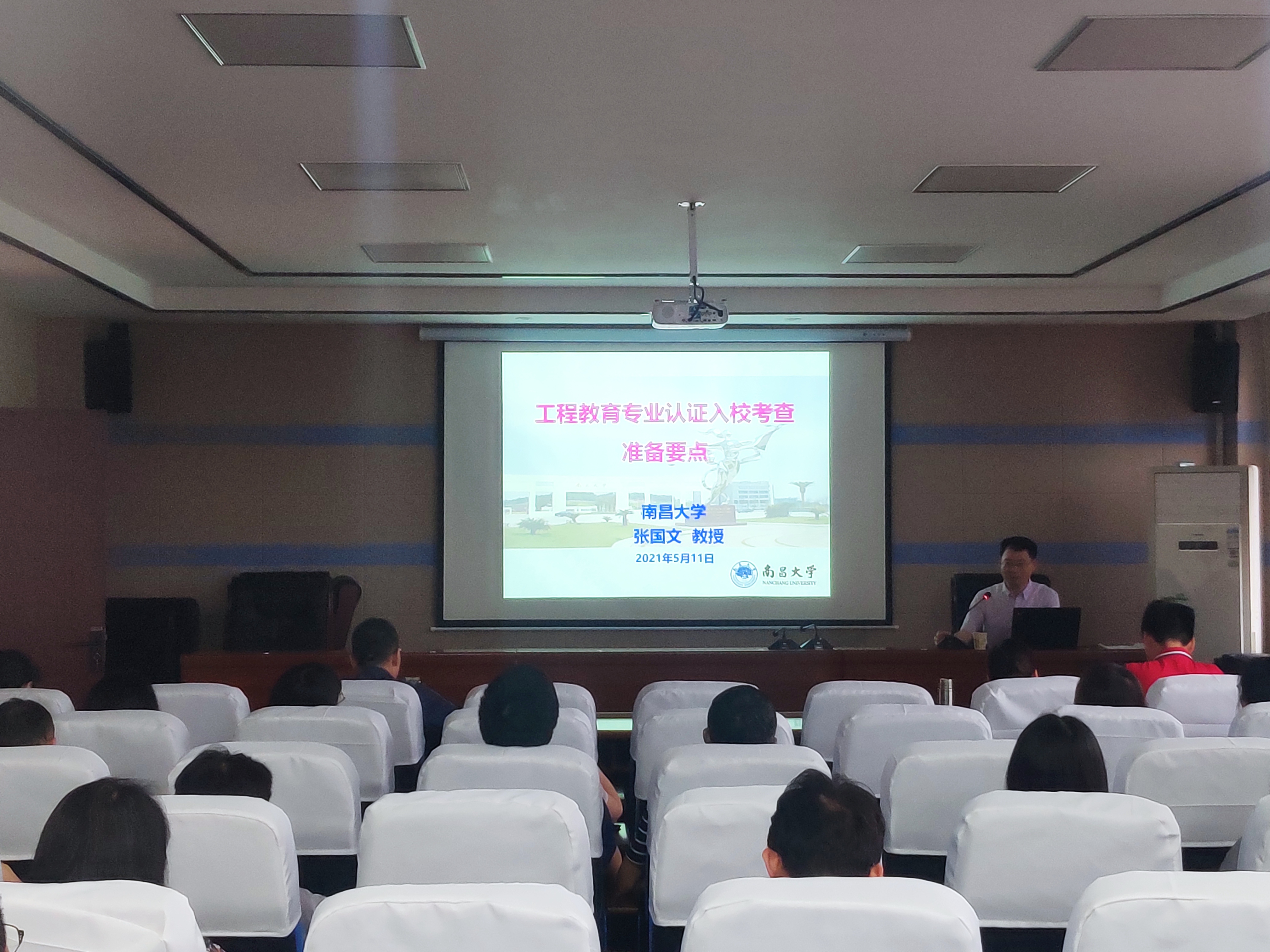 2021年4月,学院食品科学与工程专业顺利通过了工程教育专业认证自评报告,为了更好地准备专家入校考查工作,邀请到南昌大学食品学院副院长、中国工程教育认证核心专家张国文教授于5月11日下午作题为“工程教育专业论证入校考查准备要点”的报告。报告会由院长王文君教授主持,学院全体教师认真聆听了此次报告。