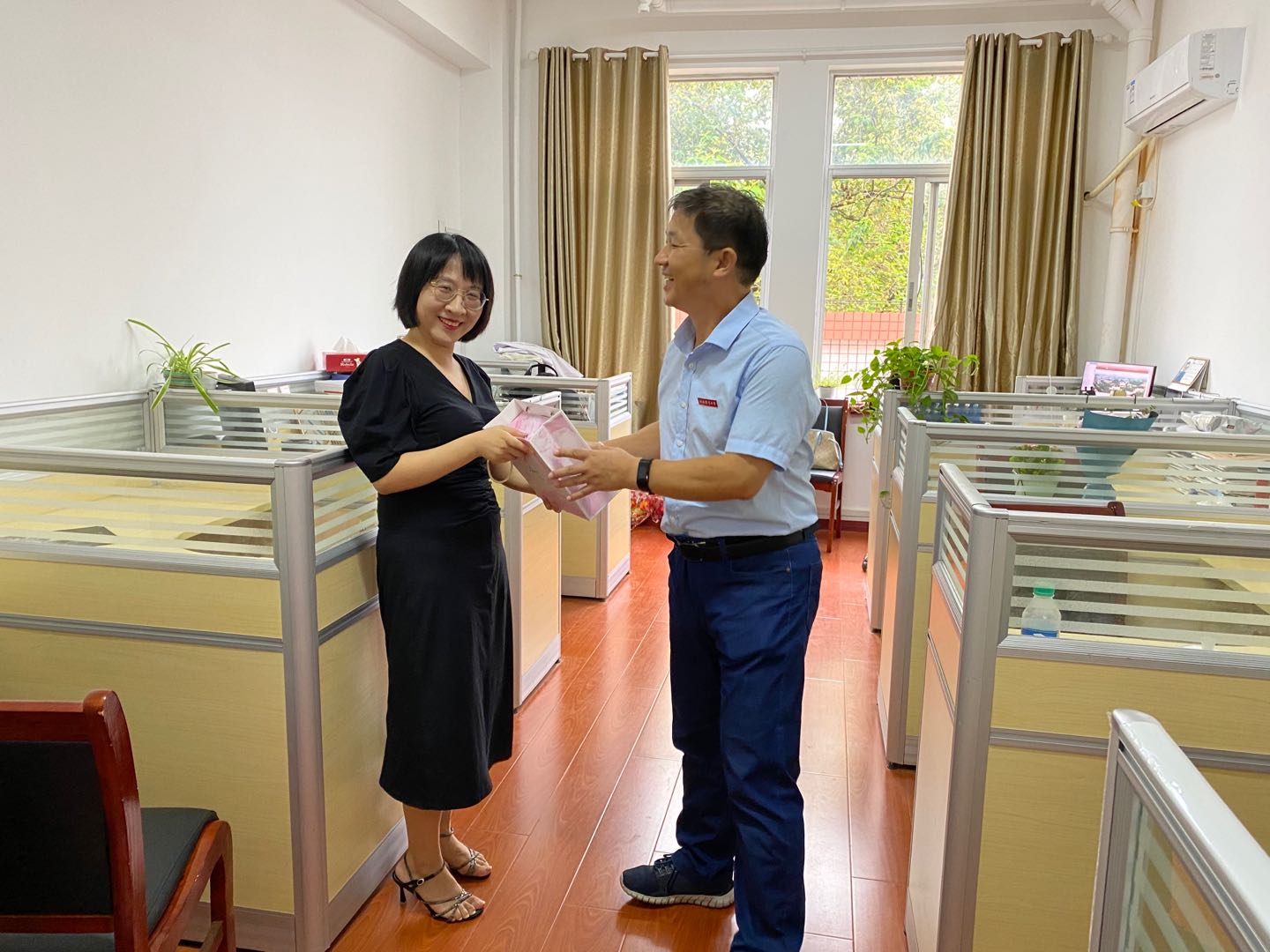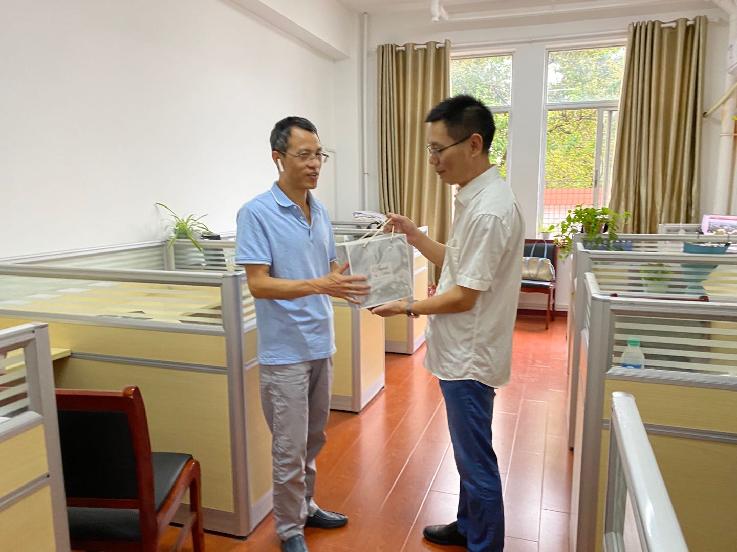 毛巾、护手霜、润喉糖、手工小玩偶,这是小小礼盒里的全部内容,却承载着学院工会对老师们的浓浓祝福。9月10日,学院工会组织开展了“礼赞教师节,致敬育书人”教师节活动,由学院党政领导将这些自制的“小礼盒”送达到每位老师手中,也将关怀与祝福送至每位老师的心里,致敬老师们为学院学科建设、人才培养中的辛苦付出。