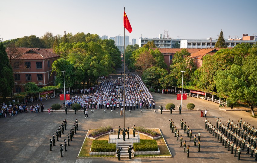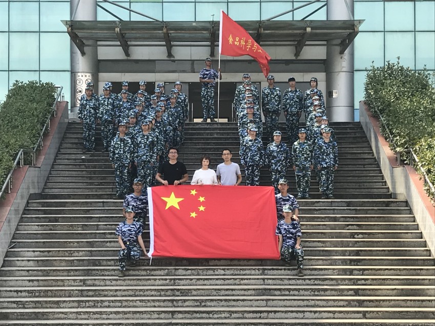 合影国旗,献礼祖国。军训期间,学院老师和军训新生代表围绕着鲜艳的国旗以军姿站立呈“70” 列队,用最质朴的方式为祖国献礼。回望祖国的历史,一路上砥砺前行,逐渐繁荣富强,师生站在国旗身边倍感自豪,齐声祝祖国生日快乐,表达真挚祝福。