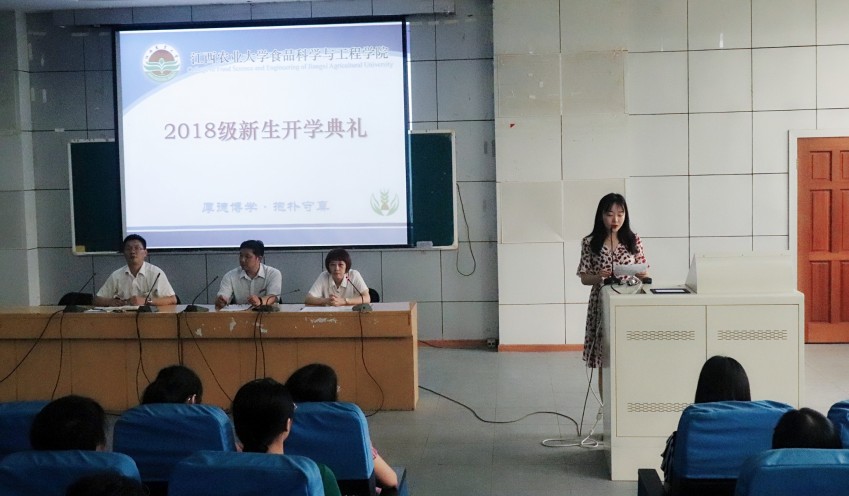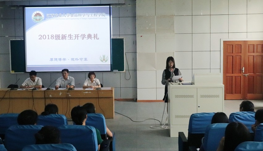 9月18日下午,食品学院在二教307隆重举行了2018级新生开学典礼,院党委书记范云、院长王文君、院党委副书记胡丹出席了本次典礼。学院2018级200余位新生参加了典礼,开学典礼由胡丹书记主持。
