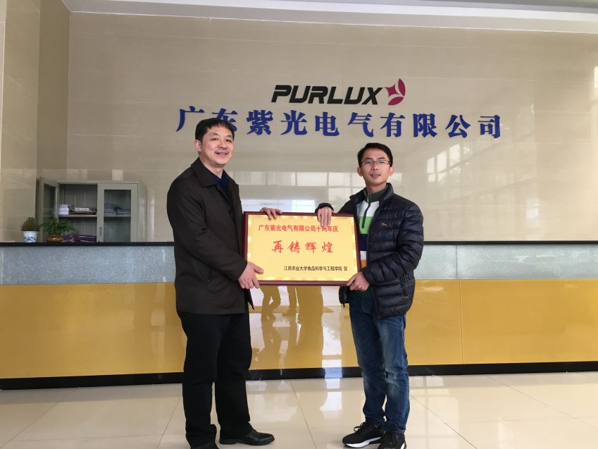 1月16日,广东紫光电气有限公司举办十周年庆典。紫光电气创始人曾锦河是我院优秀校友,学院党委书记范云、副书记胡丹、食工教研室吴磊燕老师以及教务处、学工处领导应邀参加庆典。